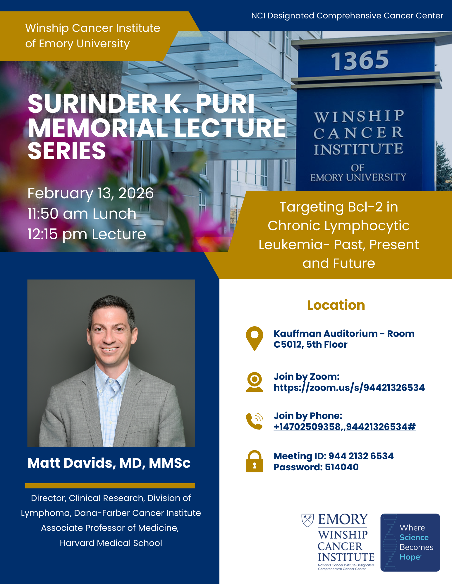 11th Annual Surinder K. Puri Memorial Lecture - Matt Davids, MD, MMSc - "Targeting Bcl-2 in Chronic Lymphocytic Leukemia - Past, Present and Future"